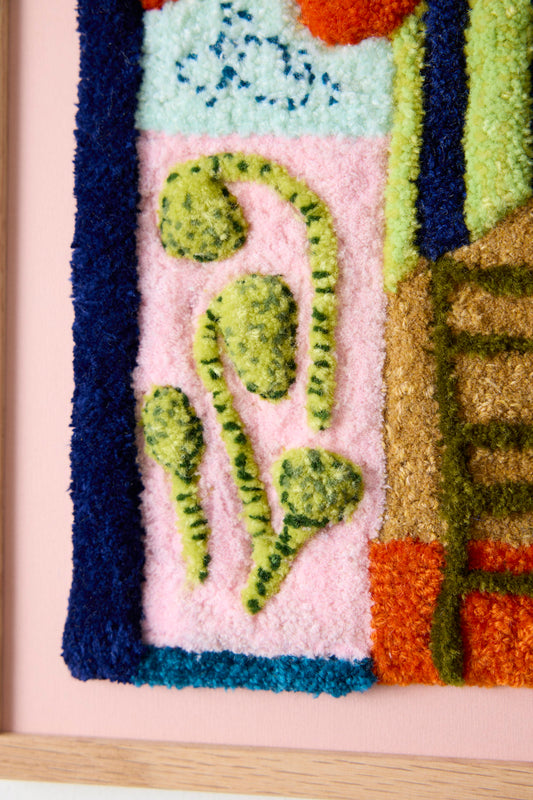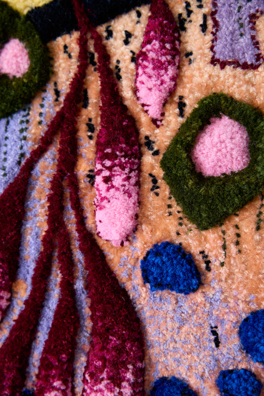 Galleri Lou Ra præsenterer Kathrine Kjærsgaard, en dansk kunstner som med sine tuftede unika vægtæpper skaber et fortællende univers af mønstre, farver som beskueren kan gå på opdagelse i igen og igen.