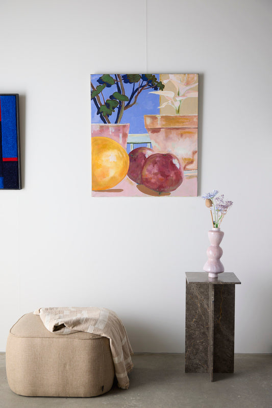 "Jeg prøver at finde skønheden i det hverdagslige. En kop, en kande eller vase er beskedne genstande, som jeg bruger som maleriske objekter. I de små sanselige stilleben inviteres beskueren til selv at danne egne billeder og måske komme i tanke om en stemning, et møde, et menneske."