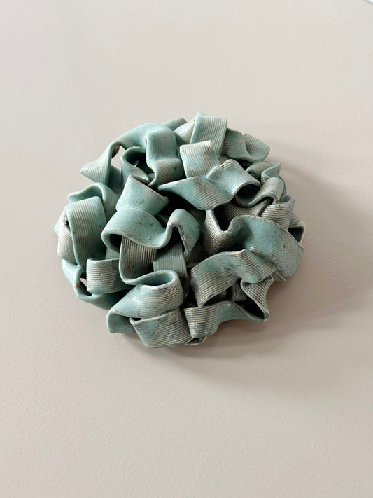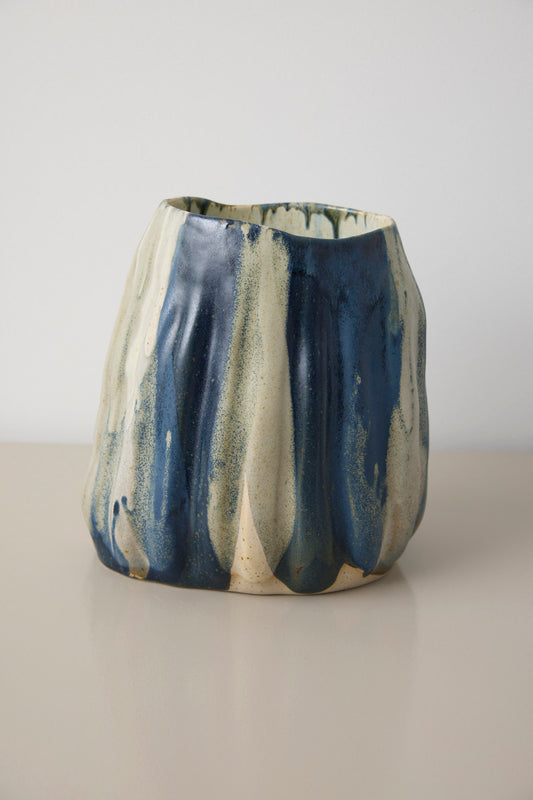 Oval rillet vase (blå/creme) - Mia Lindbirk