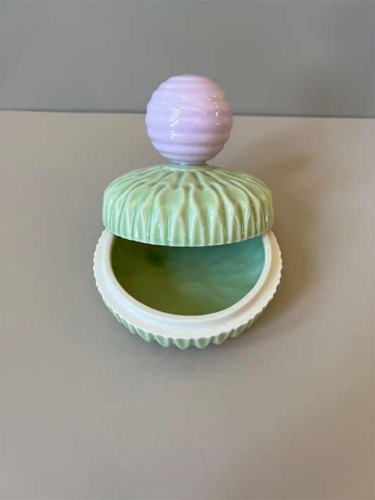 Hendes keramiske udtryk er eksperimentelt og organisk og afspejler både naturen og det menneskeskabte. Du kan opleve de fineste keramiske vaser, keramiske skulpturer, lågkrukker og lysestager.
