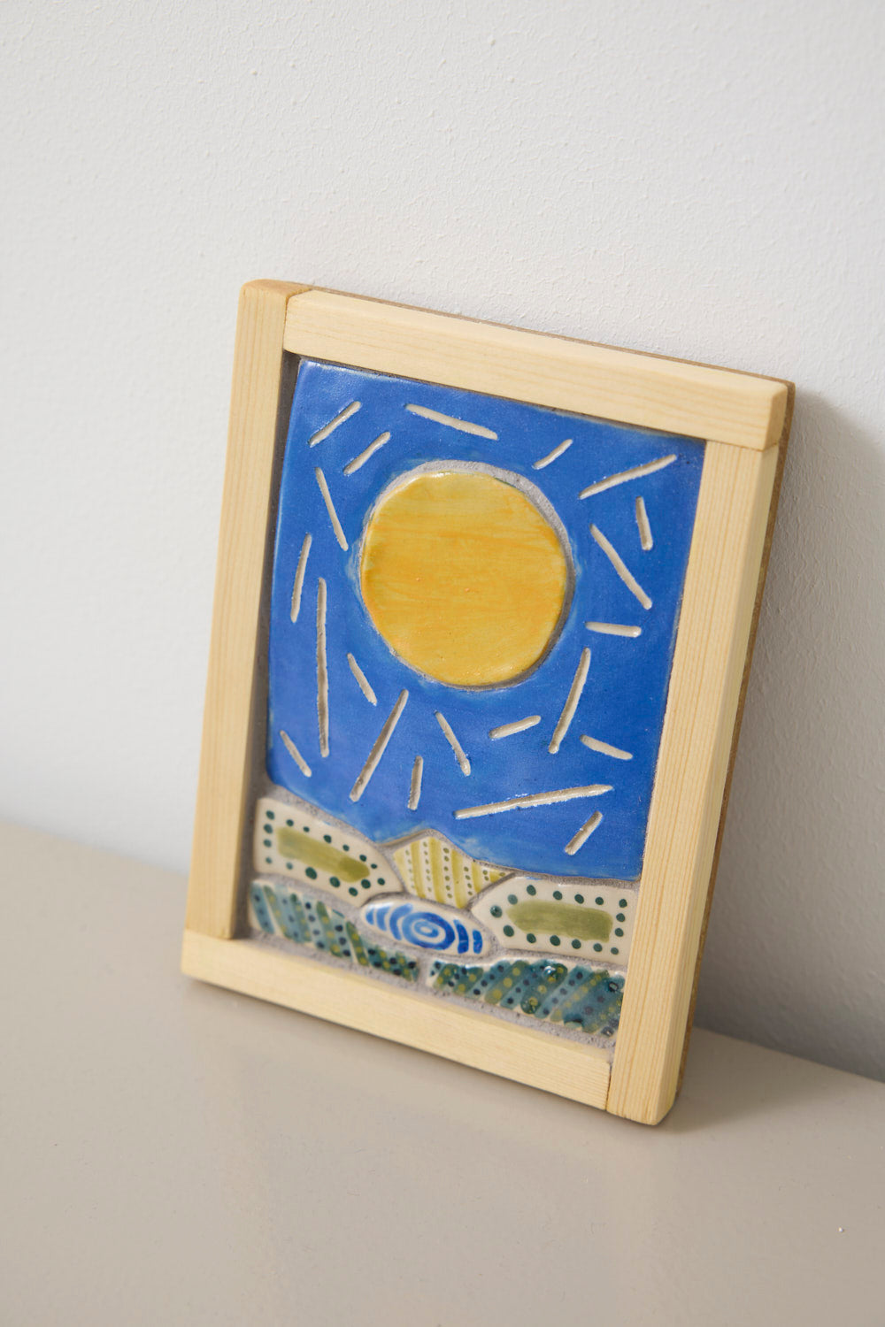 I håndlavet fyrretræsramme uden glas.