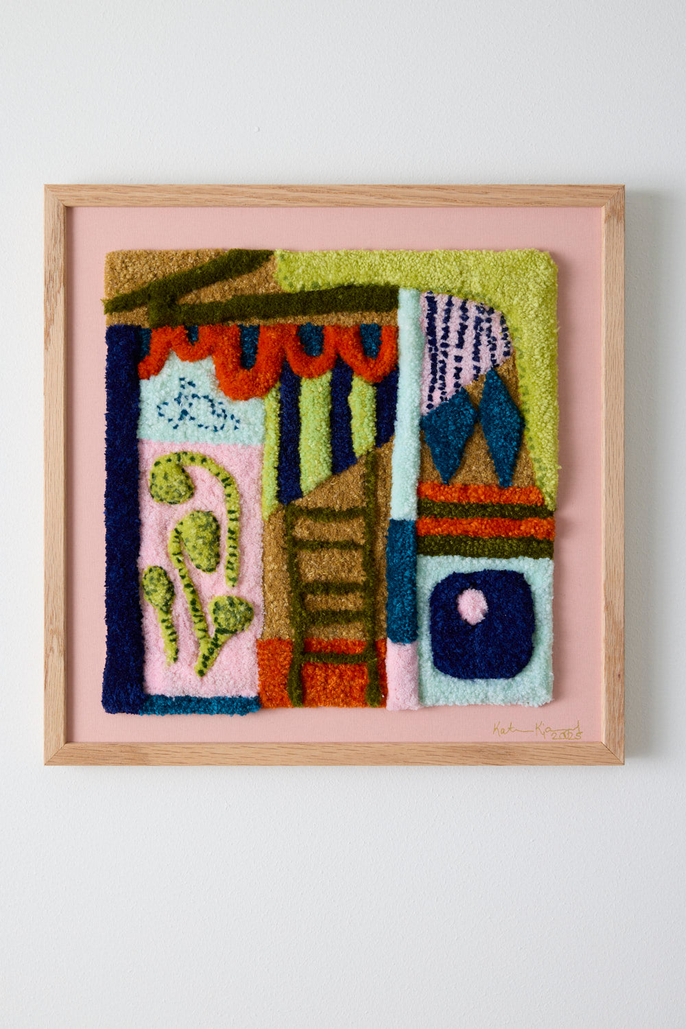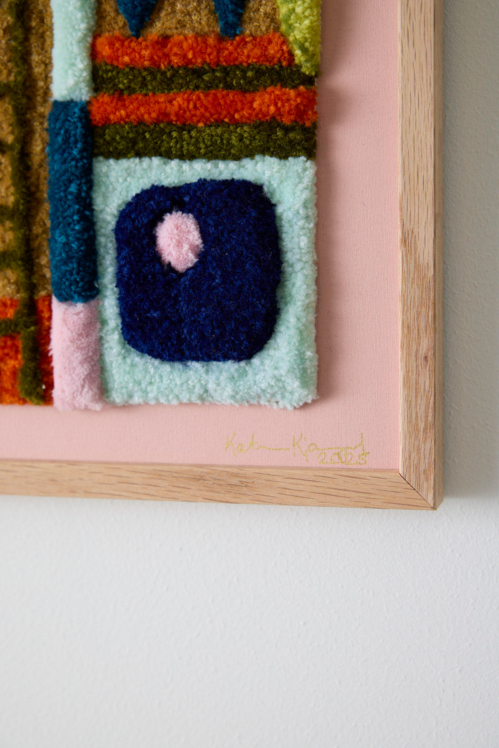 Indrammet på rosa bagplade i egetræsramme (uden glas)