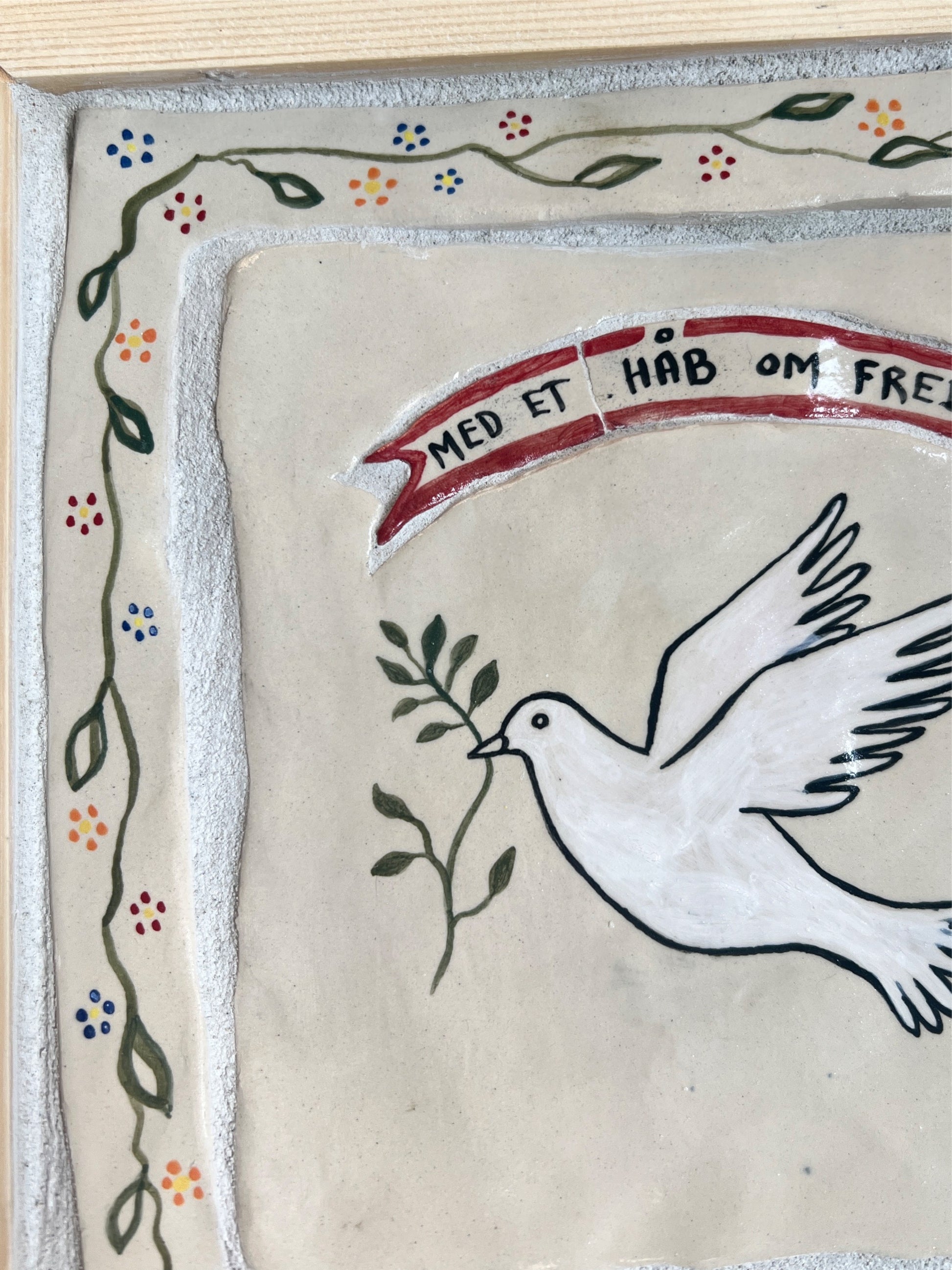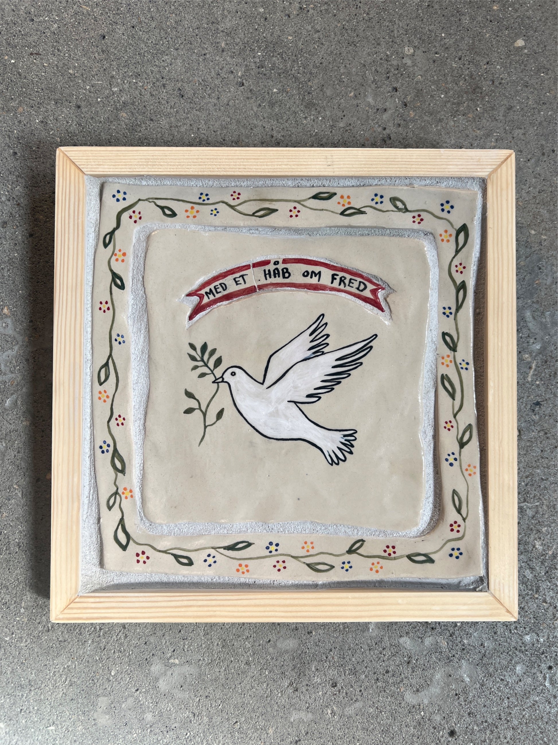 I håndlavet fyrretræsramme uden glas.