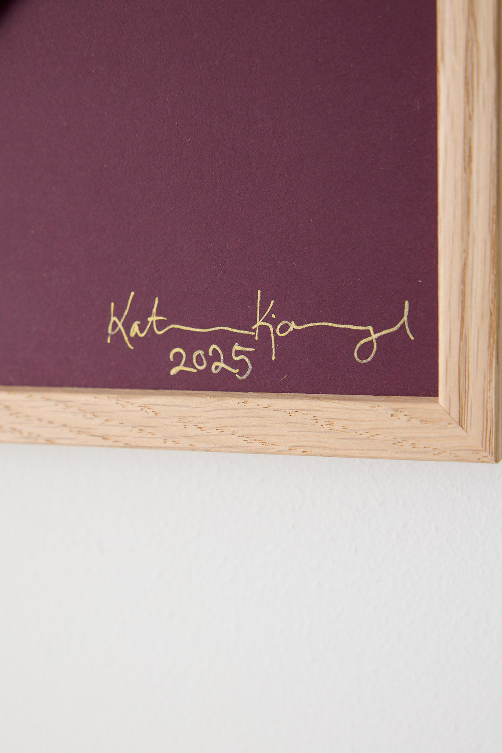 Indrammet på bordeaux bagplade i egetræsramme (uden glas)