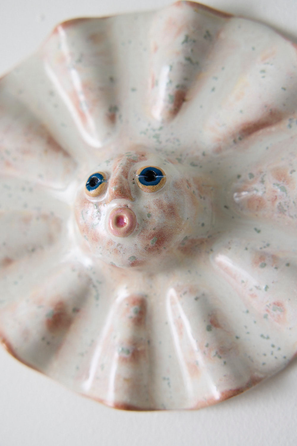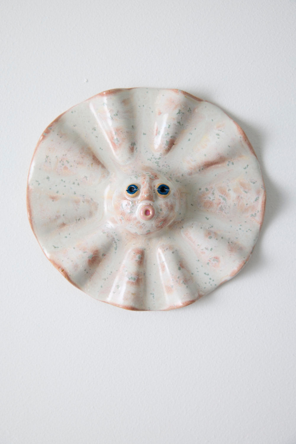 Fin keramisk sol-skulptur til væggen med læderstrop.